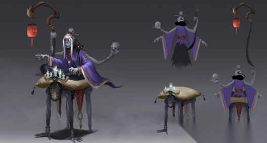 头发花白的老婆婆拄着拐杖,一步步从黑暗的房间内走出来,身形虽然佝偻,但身下却骑着一只人面兽身的妖魔。她睁着眼微笑着,一双眼珠被厚厚的白色覆盖着,看上去十分邪诡。“踢踏踢踏”的脚步声在寂静的漆黑之中尤其响亮,她的眼珠不知道什么时候改变了方向,此刻居然正直直的看着前方,慢慢地,嘴角勾起一丝意料之中的笑容,巍巍颤颤地说道:“你的背后有邪灵跟着…需要神婆我帮你驱邪吗?”