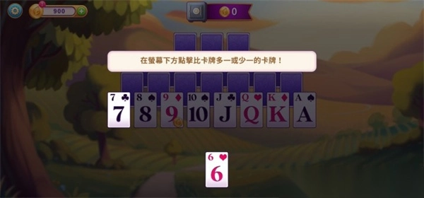 2、这时会体验一部分剧情,紧接着便进入该游戏的核心玩法模式,在荧幕下方点击比卡牌多一或少一的卡牌。
