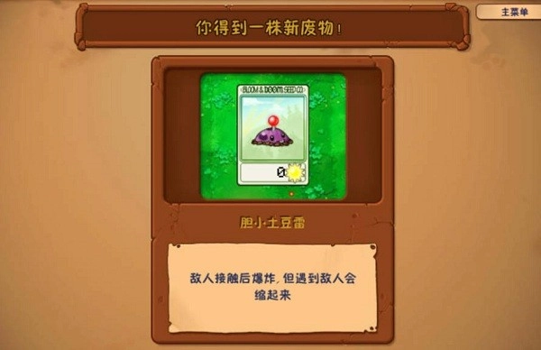 3、前面的僵尸比较简单,通过后获得新植物地雷向日葵。
