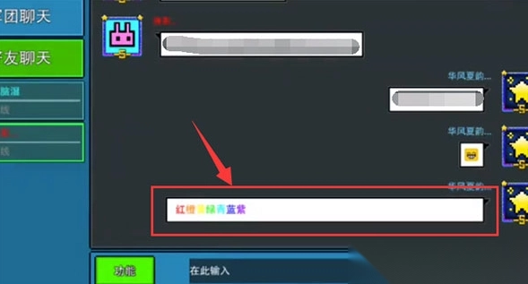 《像素射击》游戏中打彩色字体需要使用相对应的色彩代码,具体使用方法如下: