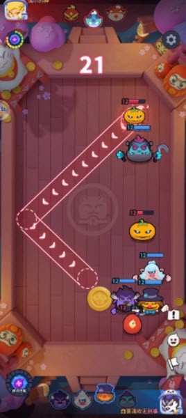 1. 南瓜叠碰撞被动时,优先考虑在碰撞己方勾子后突进人群,以此使技能点收益达到最大化,同时控制对方后续的英雄。