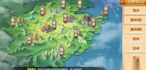 1. 当你进入浙江游戏大厅时,映入眼帘的是地图,借助它你能够挑选各地版本。