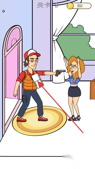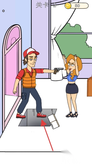 2、关卡2,面对持枪歹徒,拖动角色手中物品(文件),制造陷阱(如让歹徒踩洞),保护女性角色。