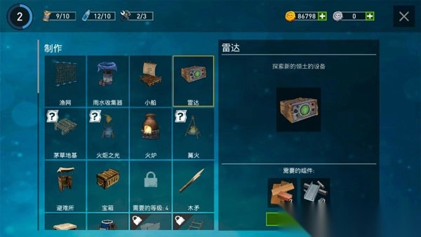 1、开局时用钩子收集资源,注意不要漏木桶,勾不到就下水捞,先造杯子和煮水器,然后造炉子和鱼竿;