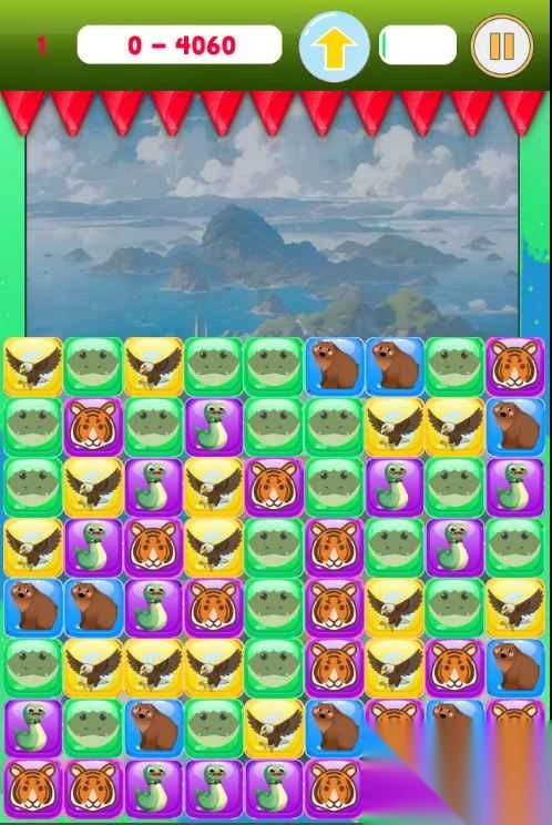 来到一座遍布可怕动物的孤岛,得把它们消除。只要点击2个及以上相同的动物,就能将其消掉。屏幕左上角显示着本关卡所需达到的分数,达到该分数即可通关。在这座动物荒岛上,探寻更多规律吧。
