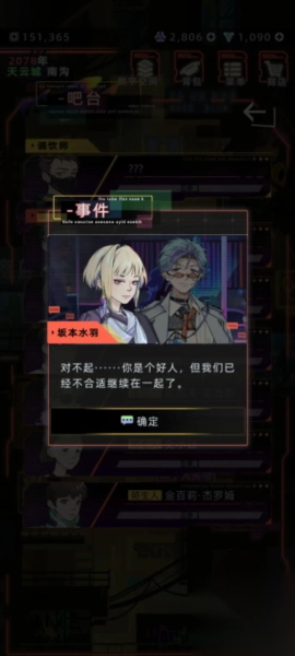 3、事件应对(第三张):当遭遇“被分手”情况时,选择“冷静确定”(这样能够保留情绪值);在这之后,前往“酒吧”进行“新角色互动”的操作。