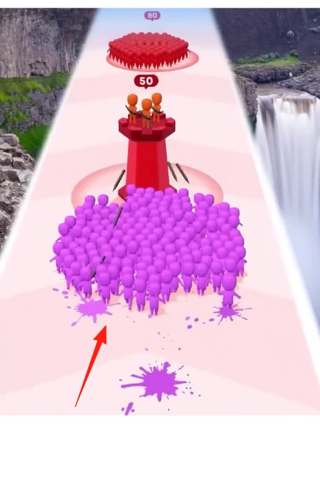 3、聚集紫色人群(图3红箭头),突破红色塔楼(50守卫),壮大队伍,持续推进,占领更多阵地。