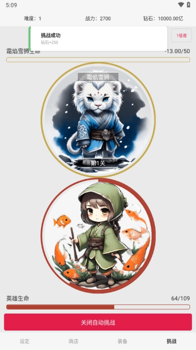 2、新增了自动挑战的功能