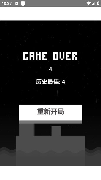 5、如若掉入水中则代表游戏结束即可查看得分情况