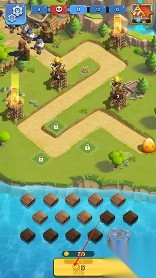4、升级之后将士兵拖至防御塔处,如图;