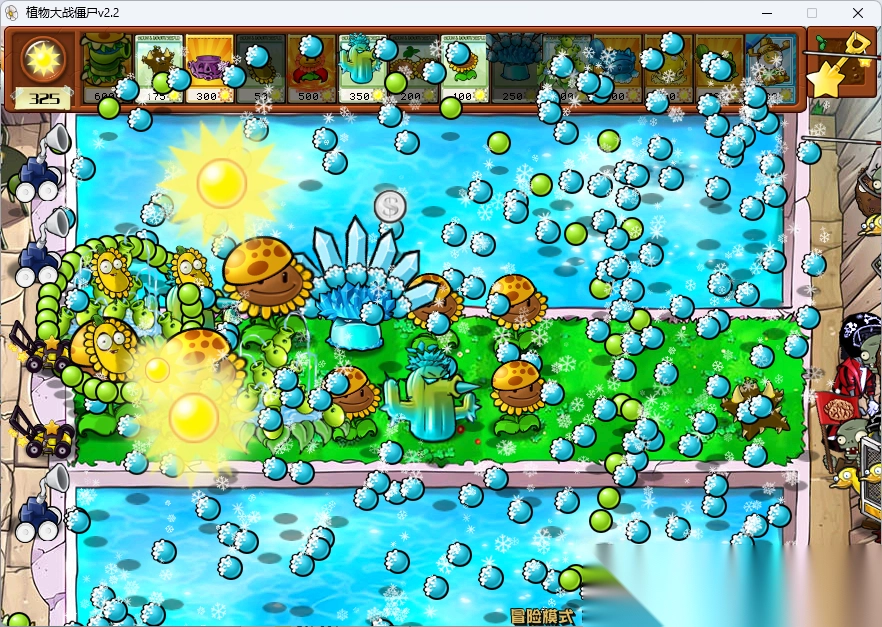 冒险模式:以经典剧情为蓝本的塔防玩法,在此模式下,新植物与场景会循序渐进地解锁。