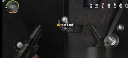 8. 返回走廊,径直走到前端,那里有一扇门,换上枪朝铁链射击,门就能打开。