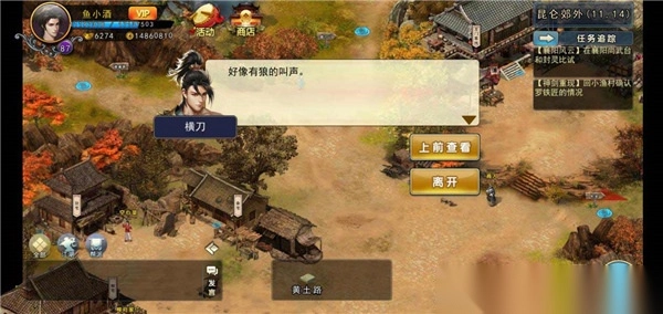 选择先阻止柳员外,等待天黑后潜入柳府(12)搜索拿走信件,天亮后找柳员外谈判搞定。然后在龙门客栈旁找到猎户商议赶走黑狼群的办法(需要20铁木,并且等待天黑)