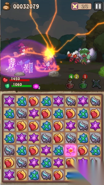 1. 把三消规则和回合制RPG相融合,四种基础纹章分别对应不一样的战斗指令,借助复杂消除(像L/T型匹配)能够触发强力技能,要是达成五连消除,则可以发动必杀技。