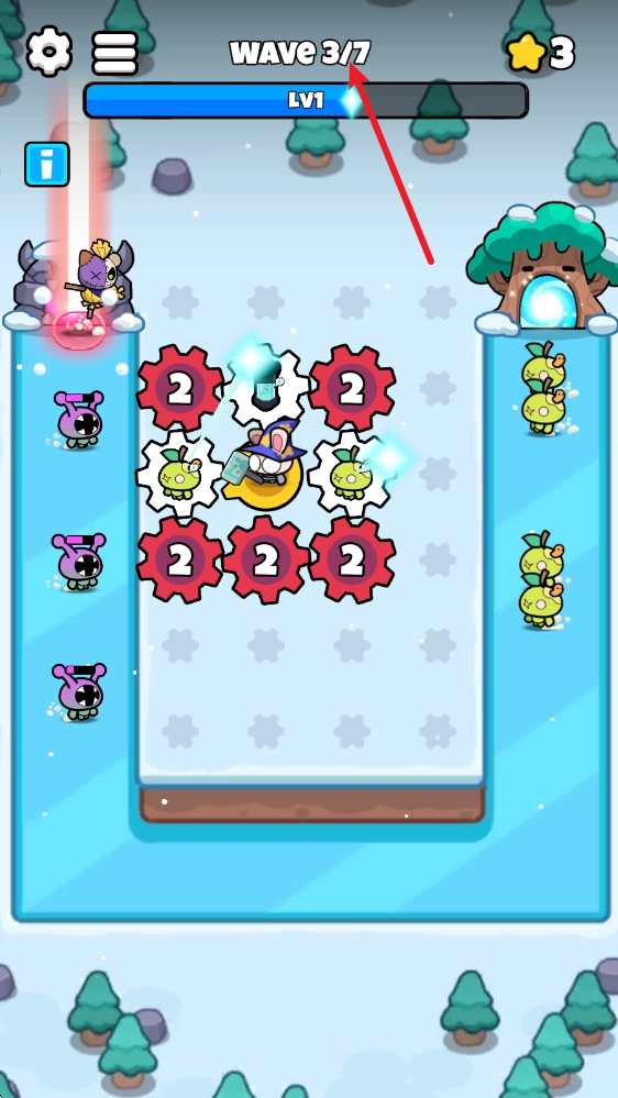 5、上方显示了每一关需要战斗的波次。