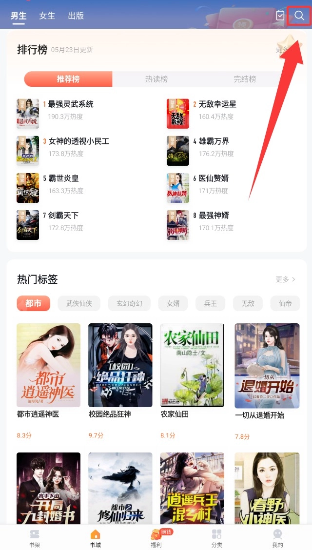 3、想快速找到某本小说的话,直接点顶部搜索栏,输入书名或者作者名就能马上找到你要的内容。