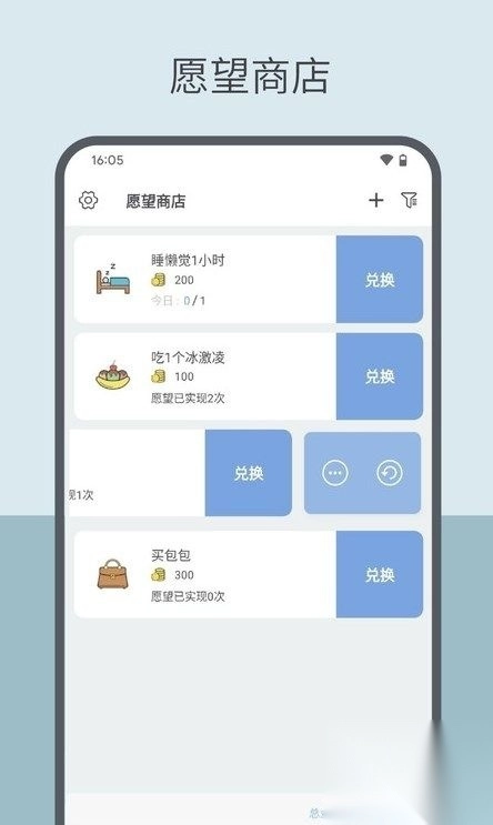 你还可以把各种心愿加入你的心愿清单,像买个新包包、换一双鞋子、来一场旅行、享用一顿大餐、美美地睡个懒觉……只要是能让你感到开心的小目标,都能够为其设定相应的积分消耗数值。