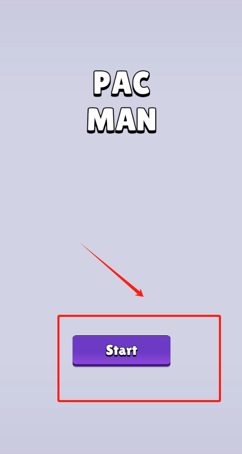 1. 当你看到紫色背景上有白色的PAC MAN标题,以及红色箭头所指的紫色Start按钮时,点击这个按钮,就可以开启吃豆人游戏了。