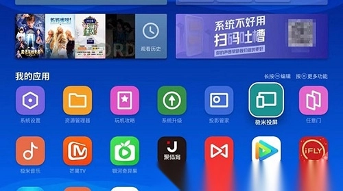 2. 极米投影仪App中包含二维码和IP地址。在极米投影仪端首页的导航栏里,选中【我的】,接着向下滑动,在【我的应用】中找到【极米投屏】软件,点击将其打开。