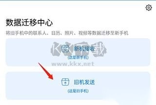 1、在旧手机上完成app安装后,打开该app,点击“旧机发送”。