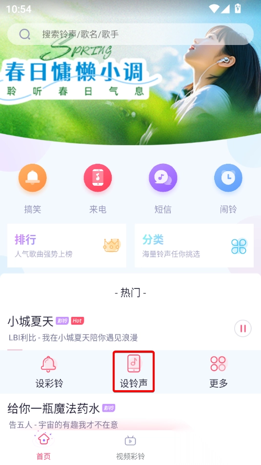 1. 开启酷音铃声app,于首页点击想要使用的铃声。