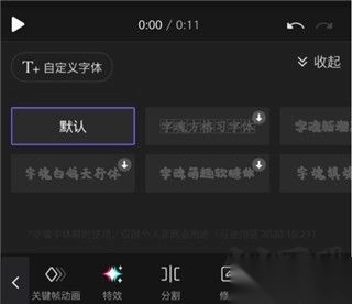 4、字体导入步骤:点击文字功能输入内容,再点击右上方自定义字体,将字体文件复制到指定路径完成导入。