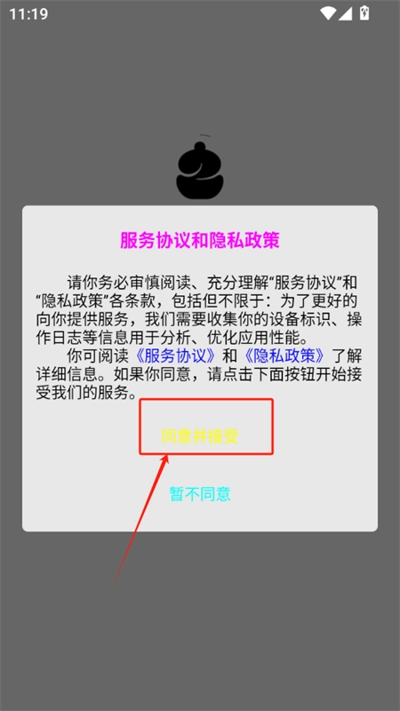 1、若要在手机上开启三帆工具箱app,第一步需同意相关协议与政策。