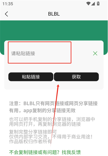 6、复制并粘贴视频的链接,点击下方的“获取”按钮即可去除视频的水印