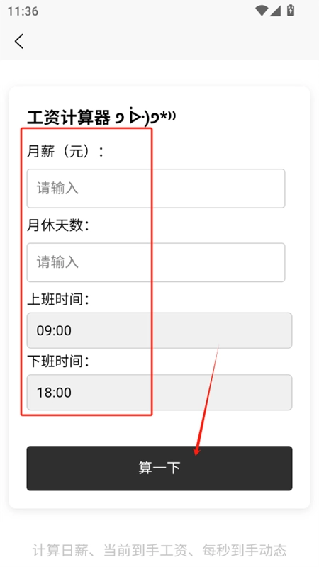 7、“日薪计算”页面具备日薪计算、当前到手工资计算以及每秒到手动态展示等功能。