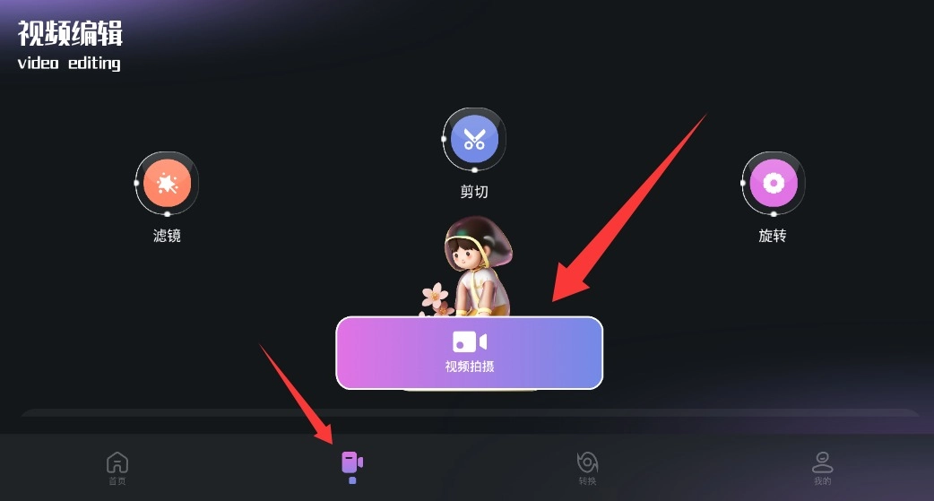 1. 应用启动后,点击底部的拍摄按钮,就能直接导入手机里的视频素材来进行编辑处理。