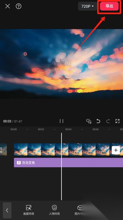 4、接着,制作完成的视频能够直接导出,如此便可以得到制作好的视频效果。