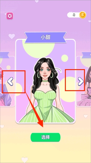 2、默认显示的初始角色为“小甜”,利用两侧箭头能够浏览其他可供选择的人物,每个角色均具备独特的造型。