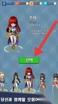1、点击【选择】(선택)红发角色“乔伊”(조이),确定出战,进入《Archer - Girl》风格副本,挑战城堡首领(Boss)。