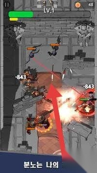3、在战斗过程中,身为指挥角色(LV.1),依照箭头所指方向展开攻击,释放技能(불노는-나의-힘!!),成功打败敌方部队后,即可通关并实现升级。