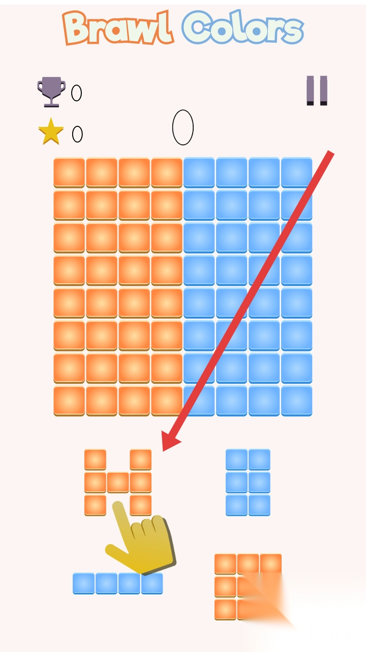 《彩色斗殴》是一款轻松有趣的休闲之作,玩法简便,极易上手。其核心在于操控随机掉落的积木,依照颜色来填满方格,充满趣味,可玩性颇佳。作为一款能启发思维的作品,游戏设置了两种颜色的方块网格,操控者要移动颜色各异的方块,将其中一个网格填满。方块的形状与颜色随机出现,玩家需留意摆放顺序,尽可能维持两种颜色的平衡。