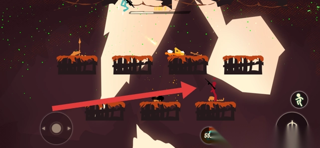 2. 当处于多平台场景时,朝着箭头所指方向跳跃至相应平台,对敌人展开追击。在此过程中,务必留意场景里诸如火焰这类陷阱,以保障自身存活。