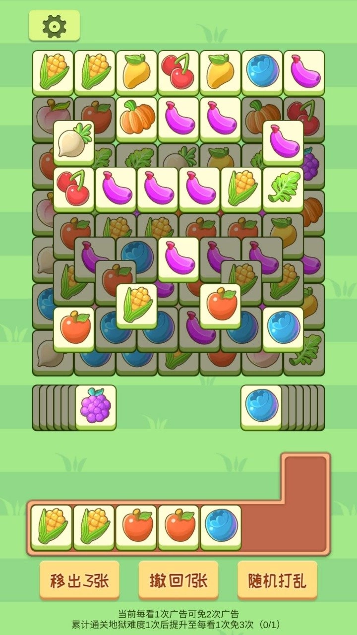 2.游戏很简单,但是很耗脑子。玩家需要找到三个图标相同的方块才能消除。