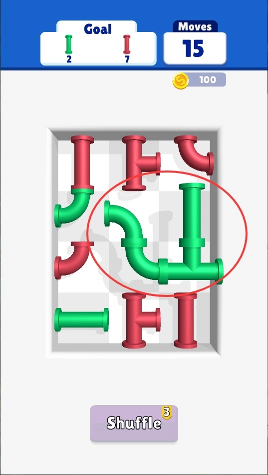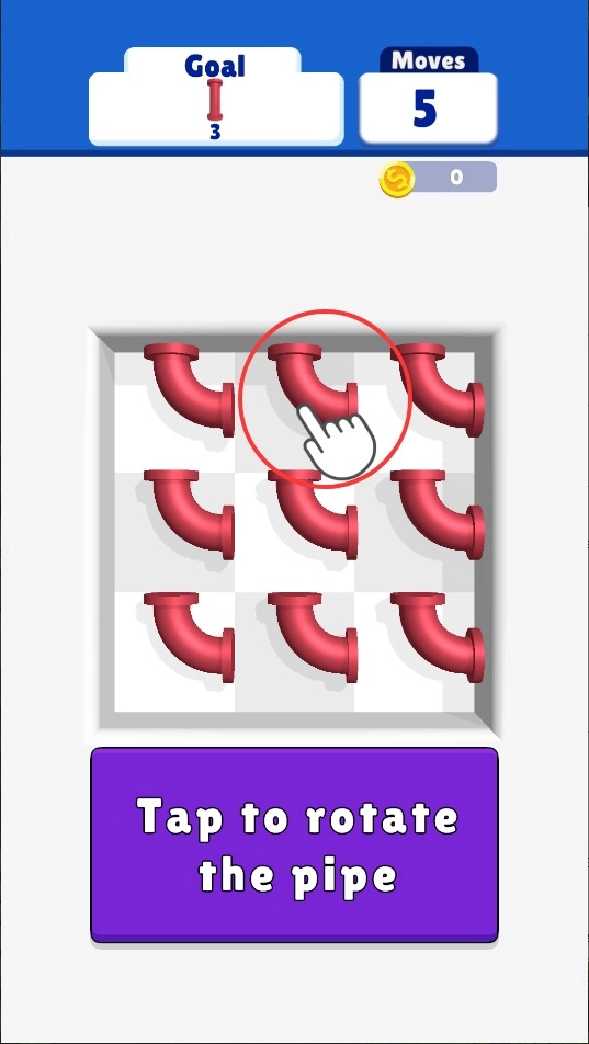 1. 通过点击屏幕来调整管道方向,使相同颜色的管口实现对接。要留意每次旋转都会消耗步数,所以需合理规划。