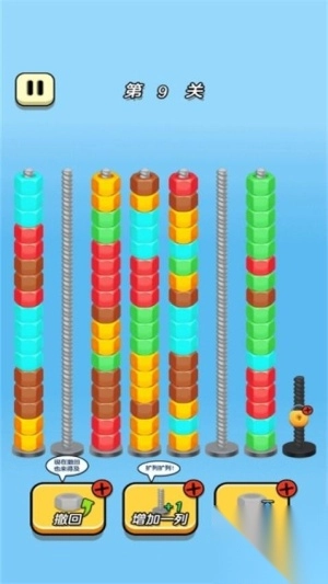 1. 开创分类新玩法,运用色彩识别与空间排列相融合的机制,让玩家把不同颜色的螺母精确匹配到螺丝上。随着关卡的深入,螺母的种类越来越多,排列的复杂程度也逐渐提高。