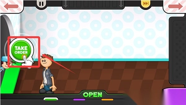 1、进入游戏后,我们首先先点击左侧的TAKE ORDER来为顾客点单。