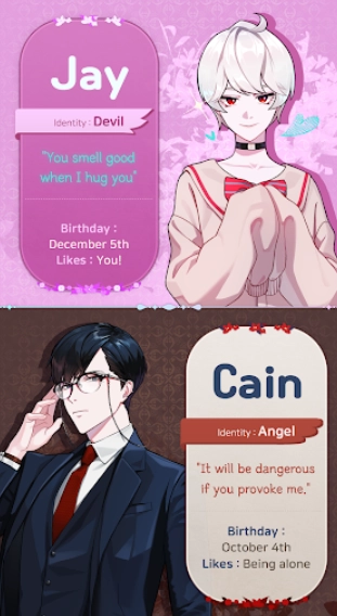 《恶魔之吻》是一款融合恋爱模拟与剧情抉择元素的安卓游戏。在游戏里,玩家将化身主角,与众多性格截然不同的角色展开互动,进而开启一连串浪漫的恋爱故事。该游戏具备丰富的情节分支以及多样的结局设定,使得玩家每次做出选择时,都能领略到不一样的浪漫情感。