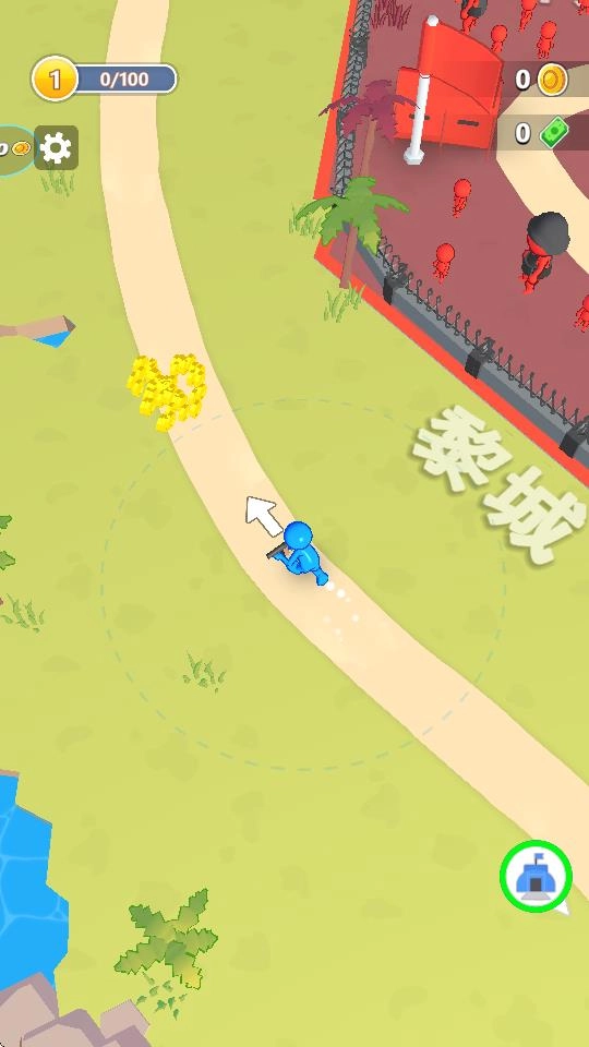 1. 控制蓝色火柴人顺着路径前行,收集金币(呈黄色堆状),对黎城、冈城等区域展开探索。