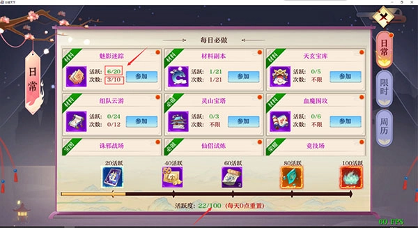 4、有些活动虽然次数不限,但是能获得的活跃度有限制,所以玩家在过日常任务时需要选择