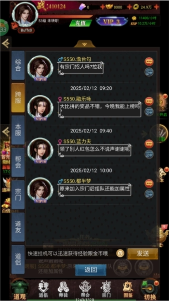3、跨服战场:加入跨服战场,与其他服务器的玩家对抗,赢得丰厚的跨服奖励。