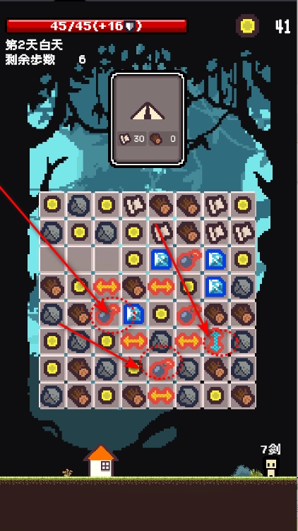 《活过今晚》小游戏是基于一款7天制作完成的三消游戏拓展而来。在游戏中,玩家白天需收集材料建造房屋,夜晚则要打怪,目标就是成功活过今晚!