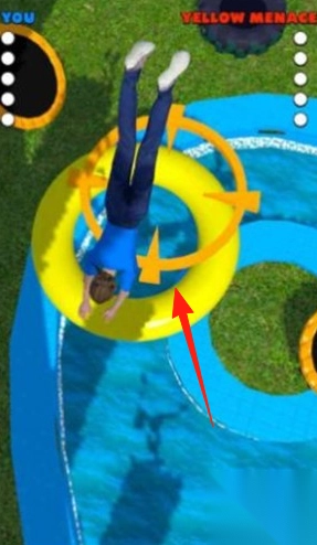 1. 通过滑行操作来操控蓝色角色,使其从高处向下滑行,途中会经过螺旋滑道、心形水池以及环形浮圈,过程中需保持平衡。