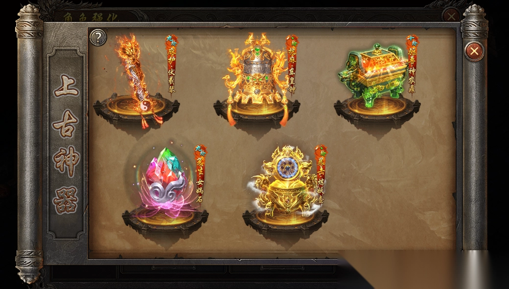 3、参与在线豪礼、每日礼包、至尊祈福等活动,获取神器碎片与升级材料。