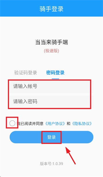 请输入账号与密码,勾选“我已阅读并同意《用户协议》和《隐私协议》”,随后点击“登录”按钮即可。