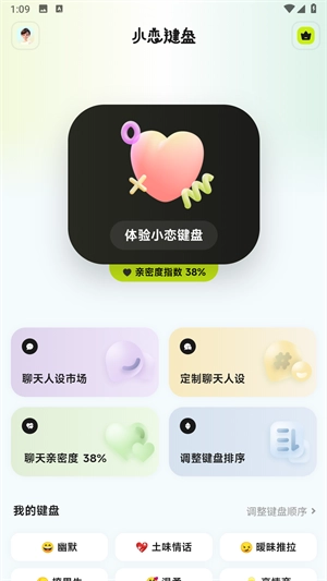 1. 开启小恋键盘app,进入到首页,便能直接体验小恋键盘。