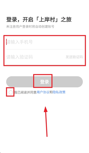 当您进入登录界面,在相应位置输入手机号和验证码,同时勾选“我已阅读并同意用户协议和隐私政策”,最后点击“登录”按钮,便可完成登录操作。